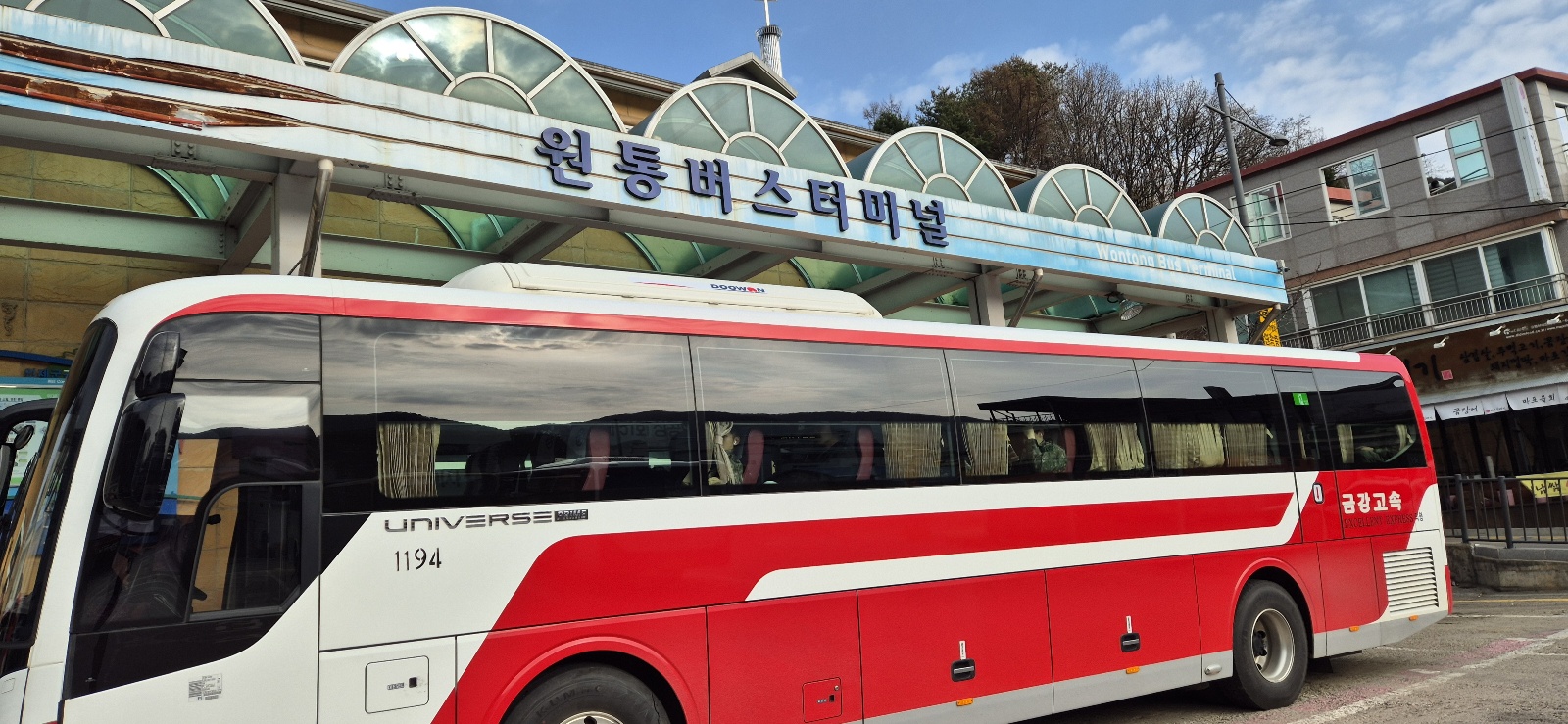 간성터미널에 가는 동서울 터미널의 첫차를 타고 원통터미널을 거쳐 간성터미널에 도착하였다.