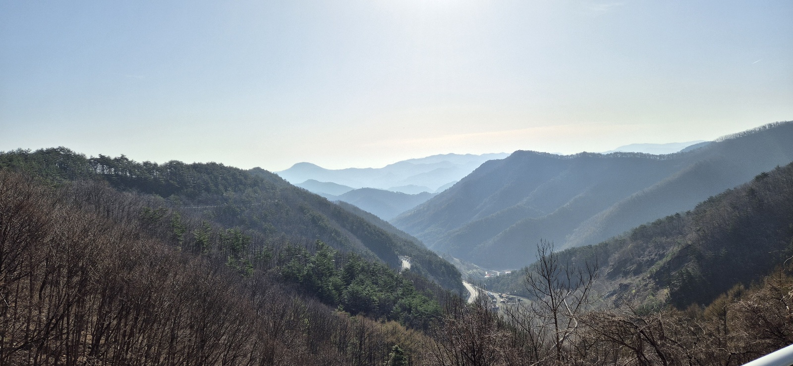 한참을 그렇게 서 있다가, 슬슬 다운힐을 시작했다.내려가는 길, 산골자기들과 지그재그로 이어지는 도로가 눈에 들어왔다.
