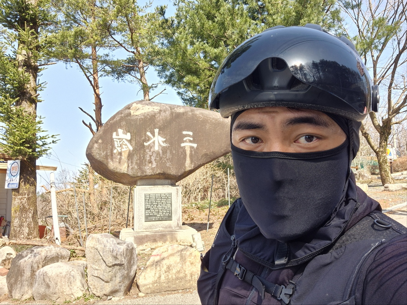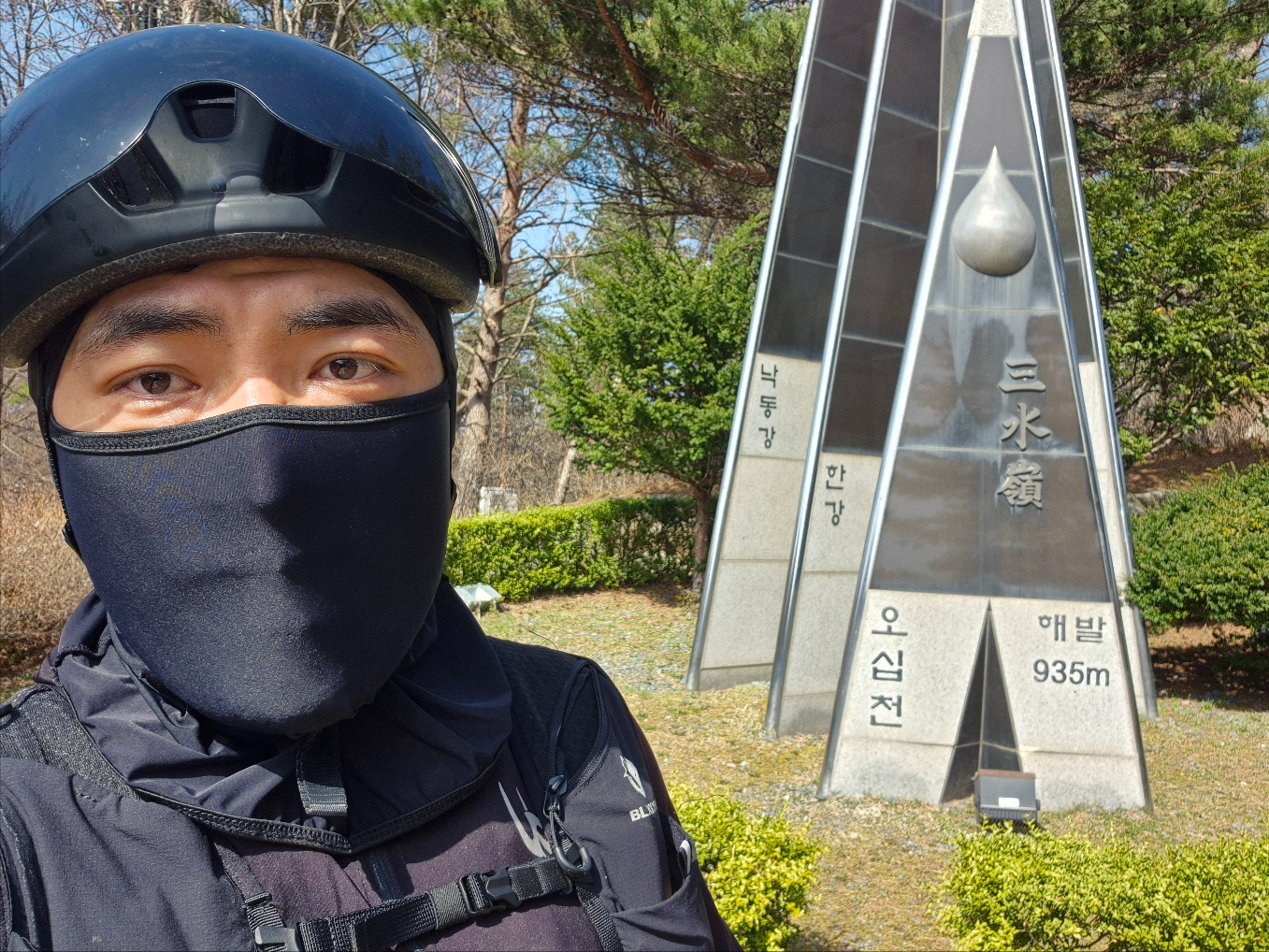 삼수령 도착 업힐을 타고 올라가던 중 '삼수령' 표지판과 자판기를 발견했다. (돼지처럼 또 먹어버렸다...)