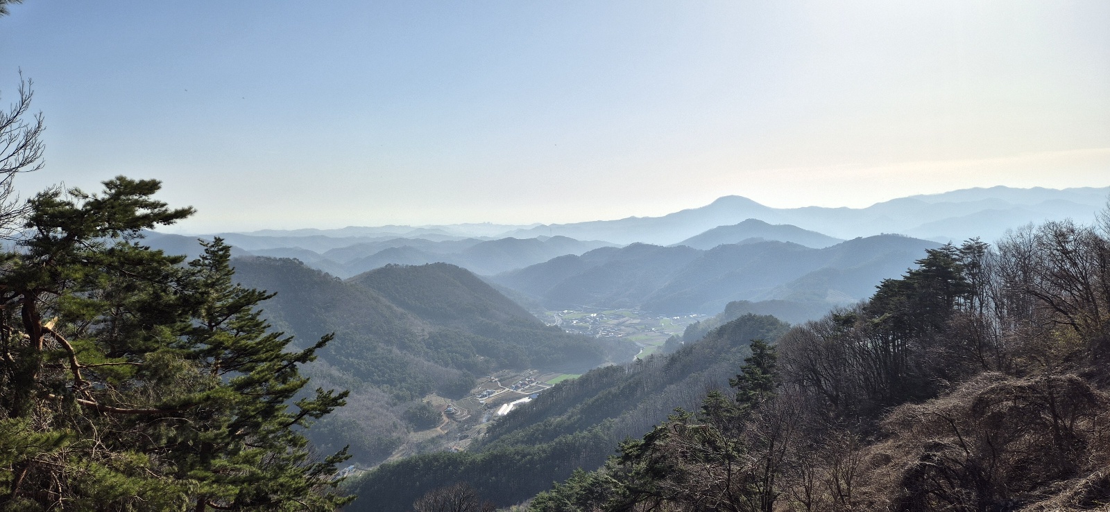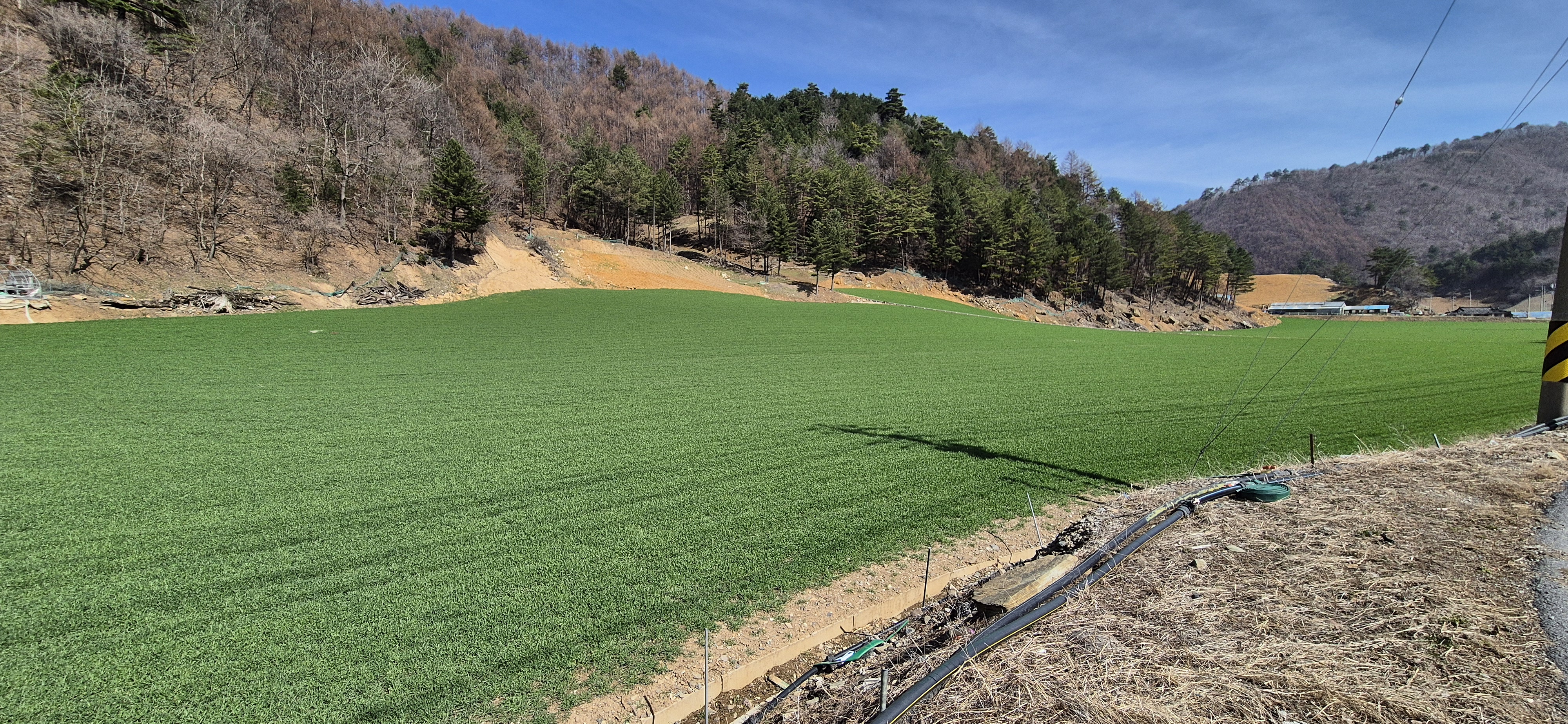 계곡 줄기와 고추밭이 어우러진 풍경 속에서 "오늘 날씨 하나는 정말 잘 잡았다"는 생각이 절로 들었다.