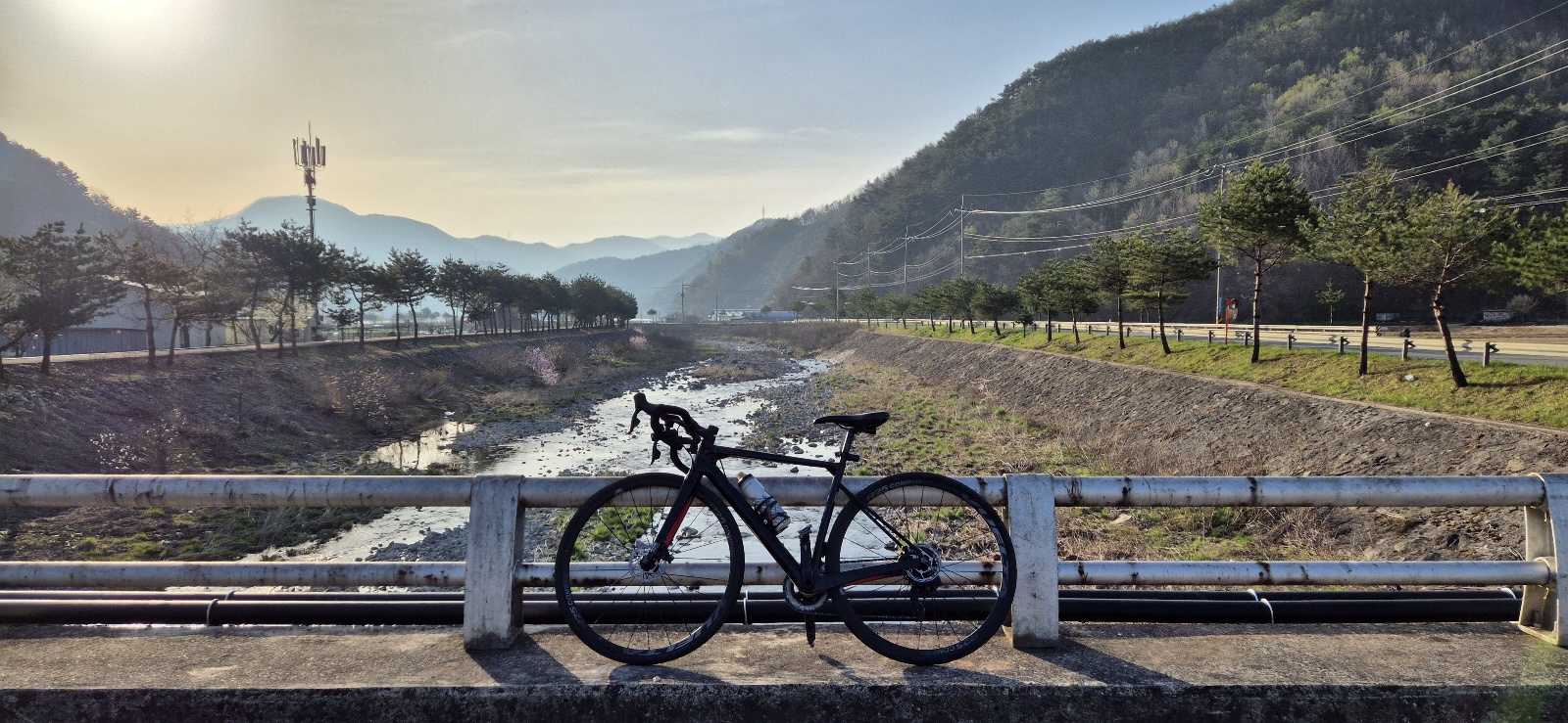 강줄기를 따라 보이는 풍경들의 모습과 내 자전거 사진
