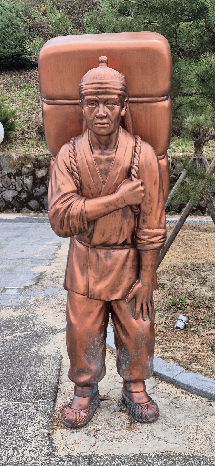 그리곤 오전약수관광지라는 비석과 함께 지게를 진 남성의 동상들이