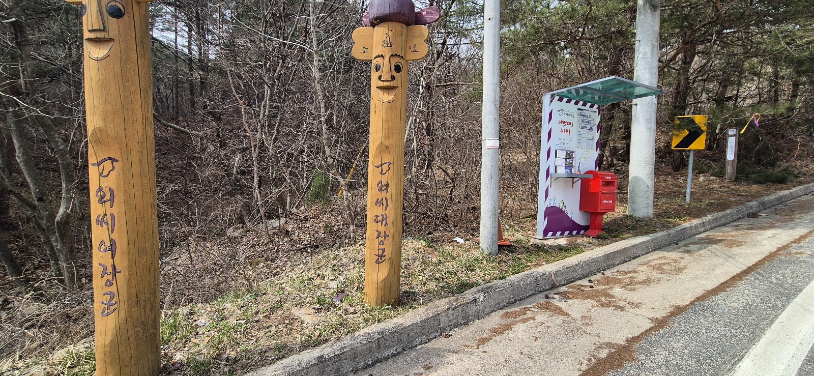 외씨여장군이라 쓰인 장승과 우체통이 보인..