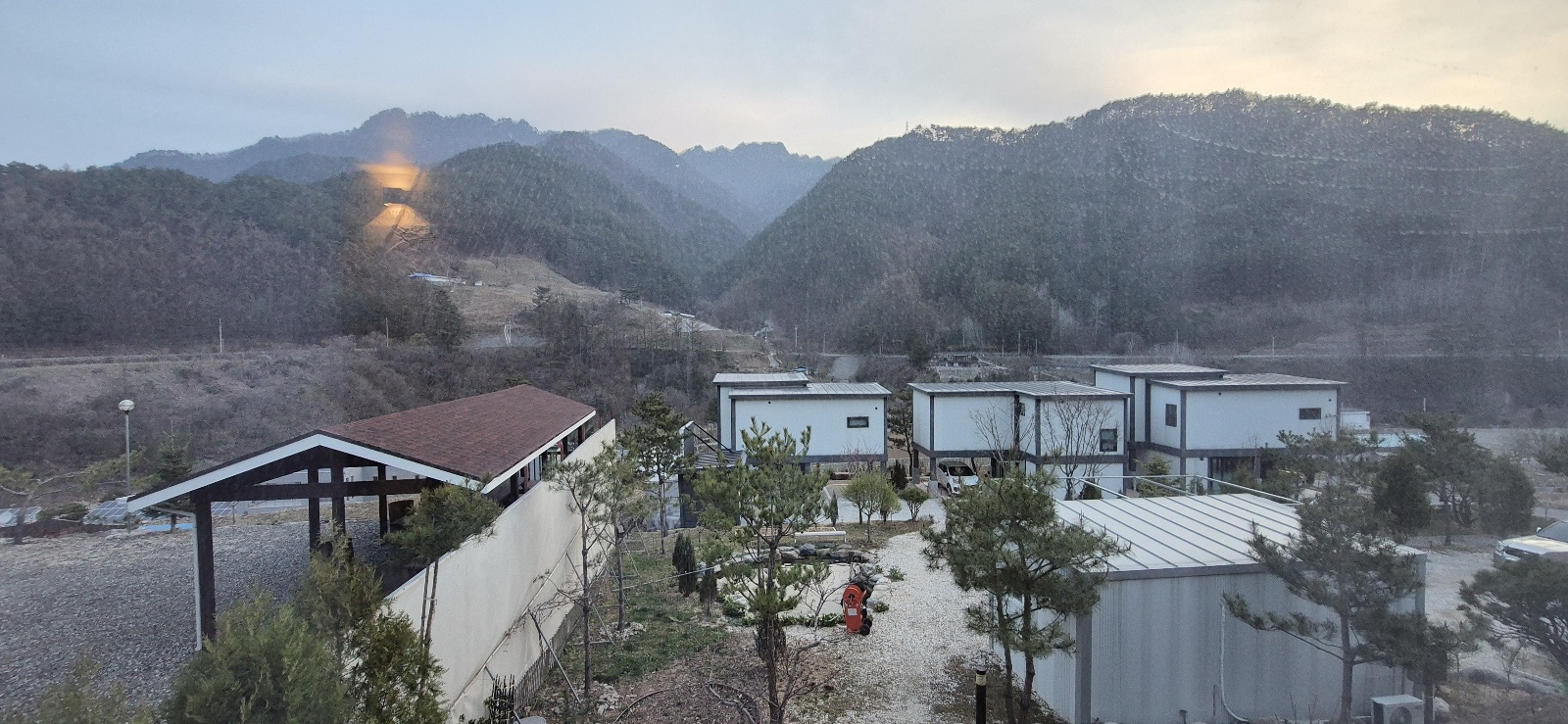숙소에서 바라본 아침 풍경 컨테이너 형태의 모양을 갖춘 2층 숙소에서 개운하게 잠에서 깨고...
