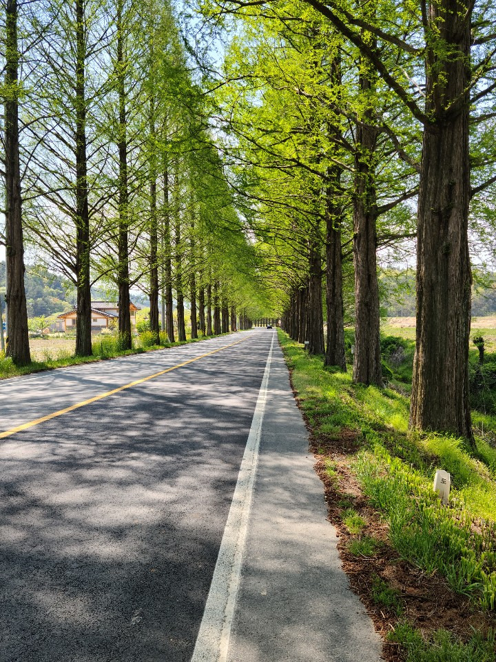 얼마 지나지 않아 정말 멋진 메타 세콰이어길이 나와 여러장의 사진을 남기고 천천히 라이딩을 하였다.