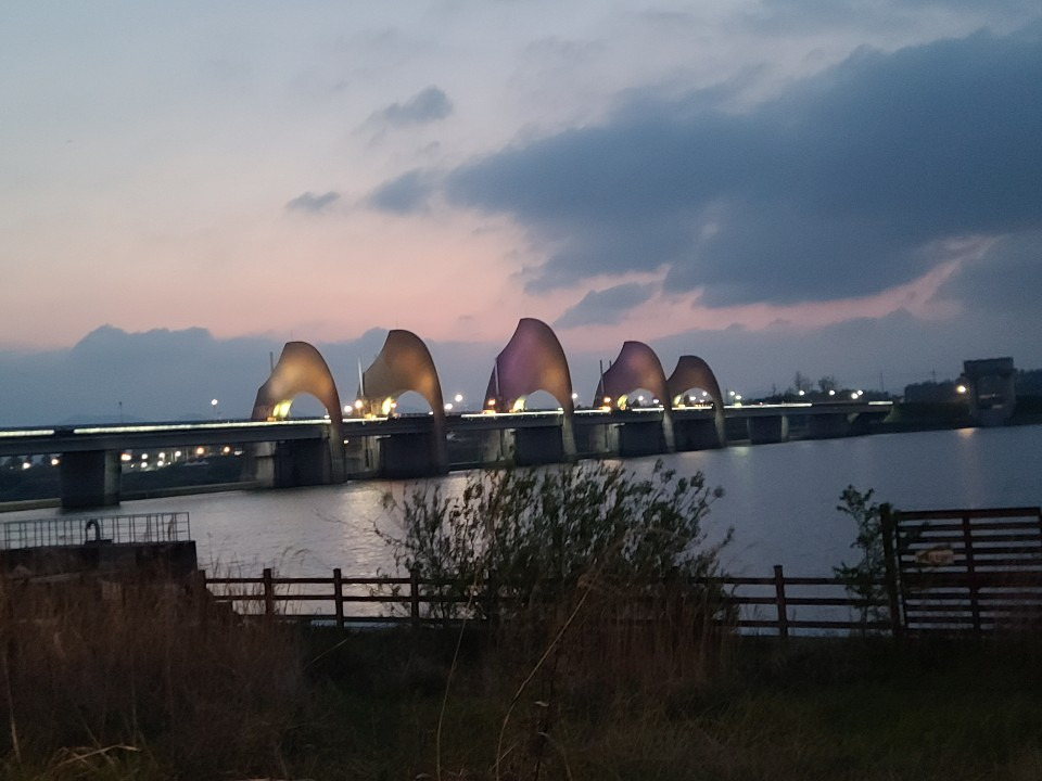 가로등의 불빛으로 비치는 승촌보의 모습을 보면서.. 잠시 감상에 빠졌다.