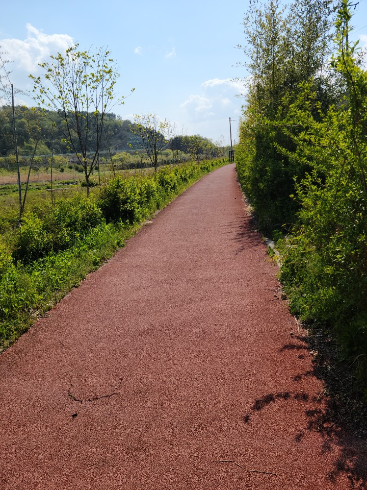 하지만, 말로만 듣던 그 유명한 우레탄 길을 만났는데..뭔 이딴 길이 다있나... 공무원들은 무슨 일을 이따위로 하는가 불평이 나올만한 길이었다.