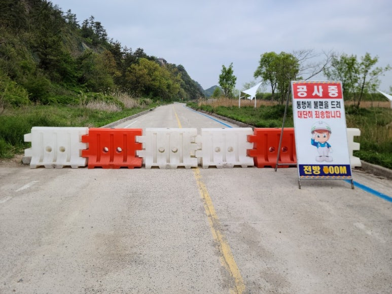죽산보 인증센터를 넘어서 쭉 달리다 보면 위와 같이 공사 중인 구간이 나왔다.
