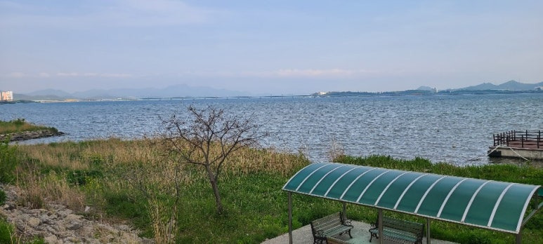 한쪽은 강의 느낌이 물씬 나고, 다른 한쪽은 바닷물의 느낌이 슬슬 나오고..