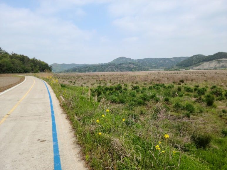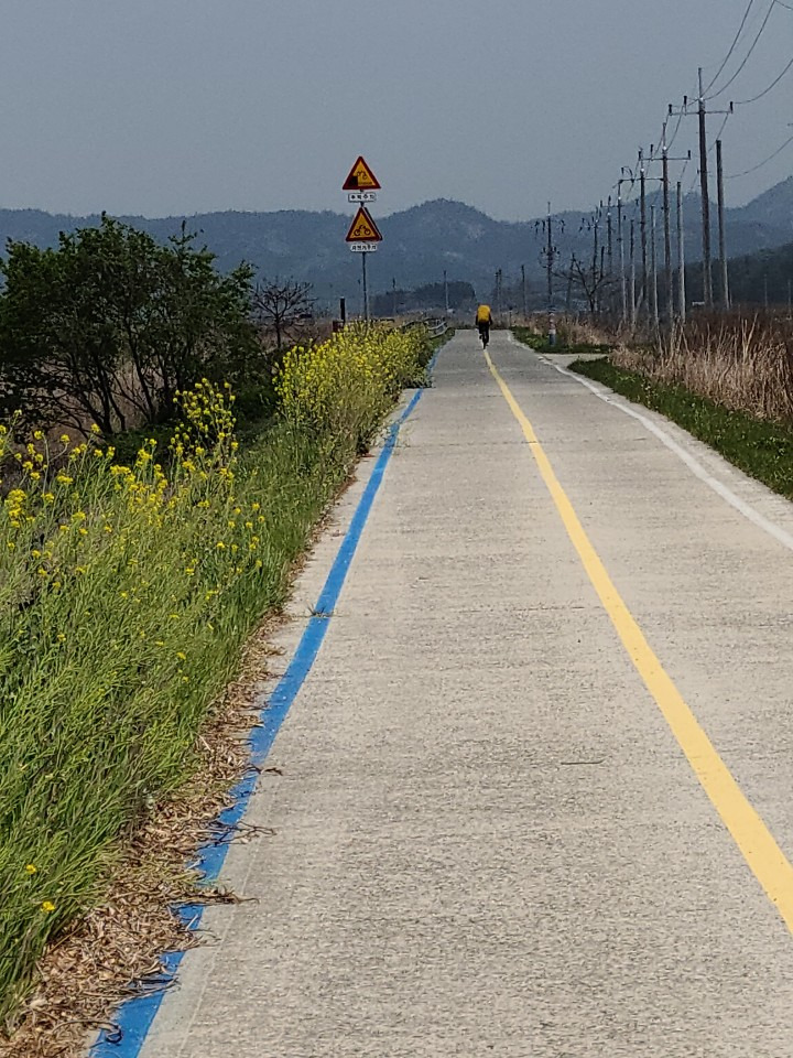 곰탕으로 아침을 든든하게 먹고 잠시 휴식 겸 자전거길까지 1.5km 정도는 걸어서 이동했다.