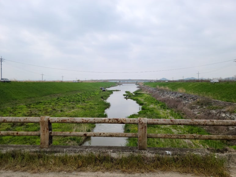 역풍에 고생하며 달리던 도중 강의 느낌과는 사뭇 다른 물줄기들이 슬슬 보였다.