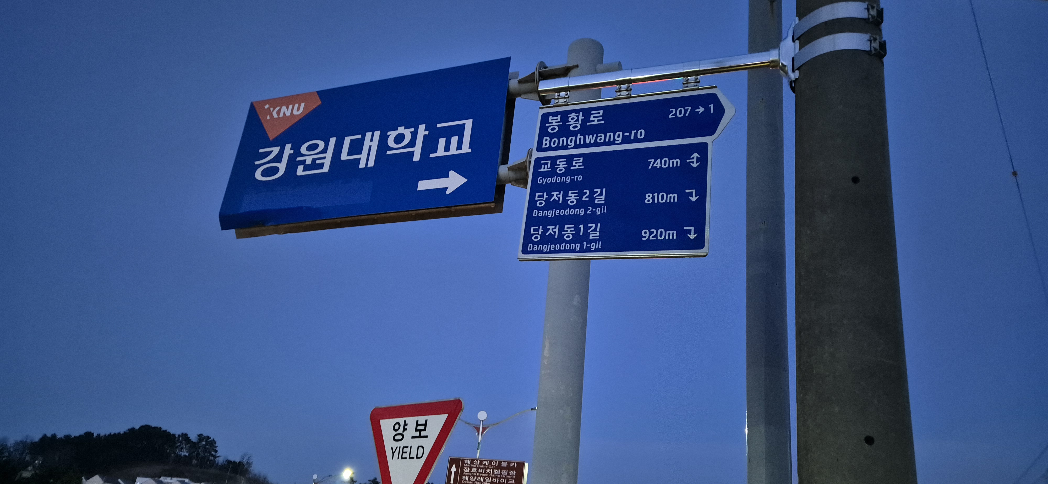 강원대학교가 보이는 표지판 앞에서 가민을 종료하고..