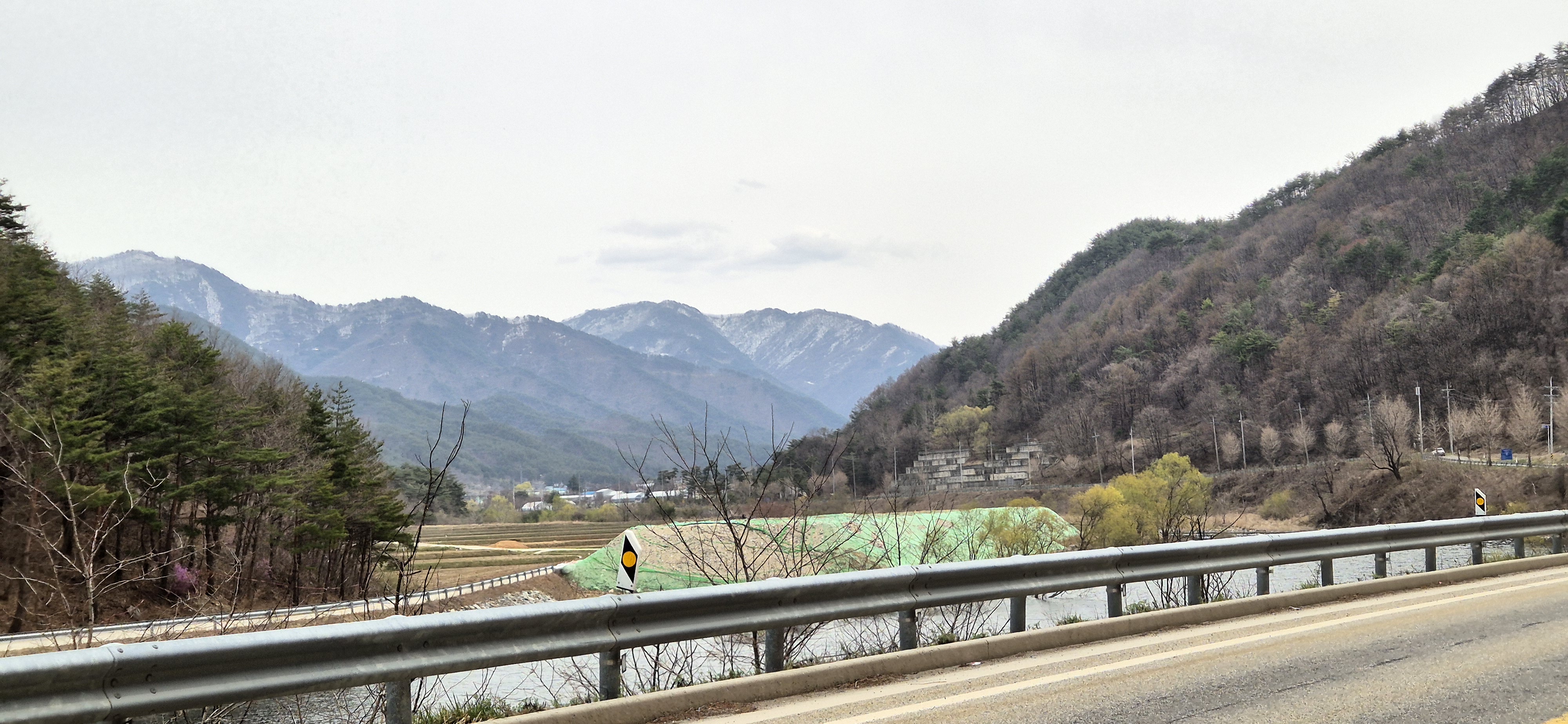 나무들을 뒤로하고... 다음 삽당령을 향해 달리고 있는 도중에 우측에는 점점 넓어지는 계곡이 보이기 시작했다.